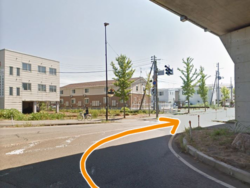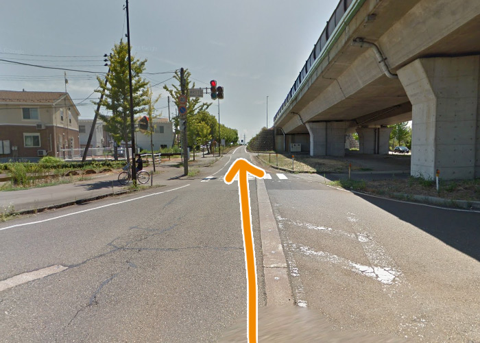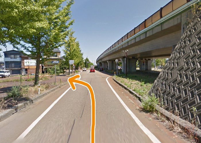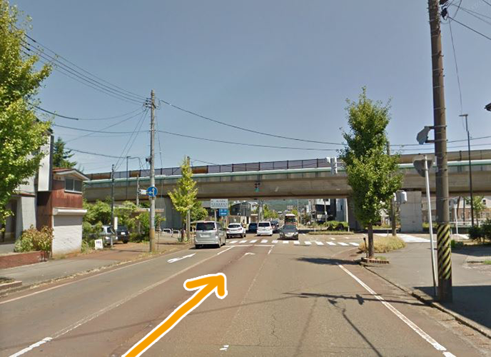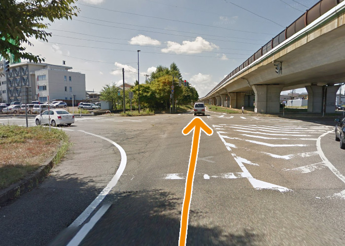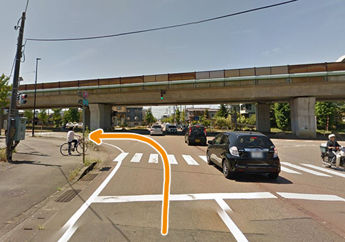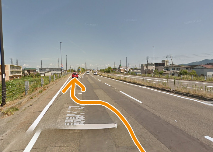 美沢3丁目の交差点を右折するので、右折レーンに入ってください。
