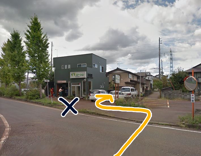 前の道は一方通行なので、駐車場の入り口に注意してください。(次に続きます)