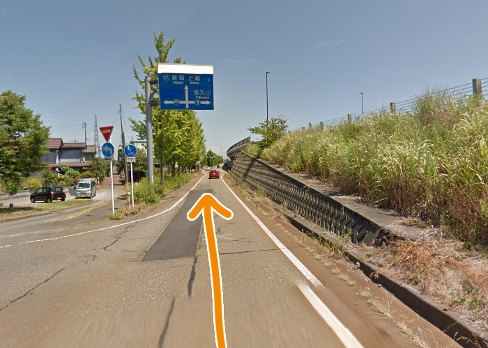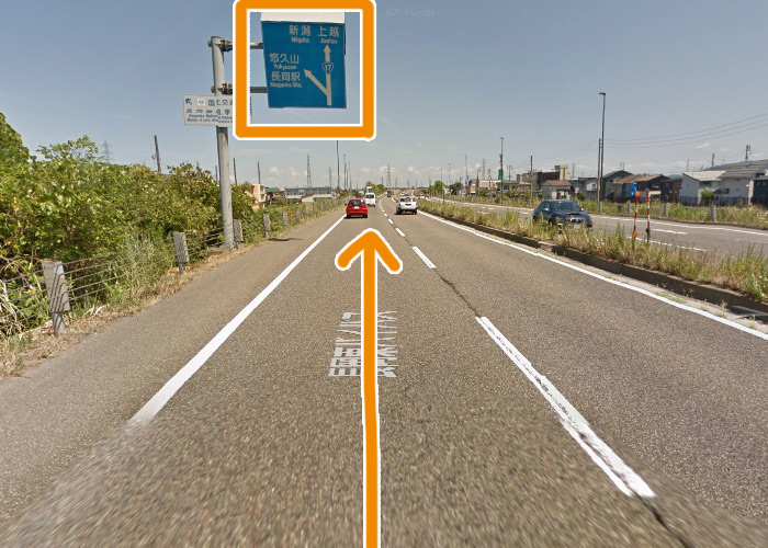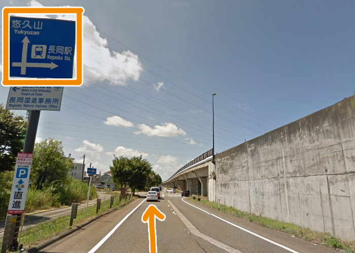 青い看板が「悠久山・長岡駅」の表記の箇所です。