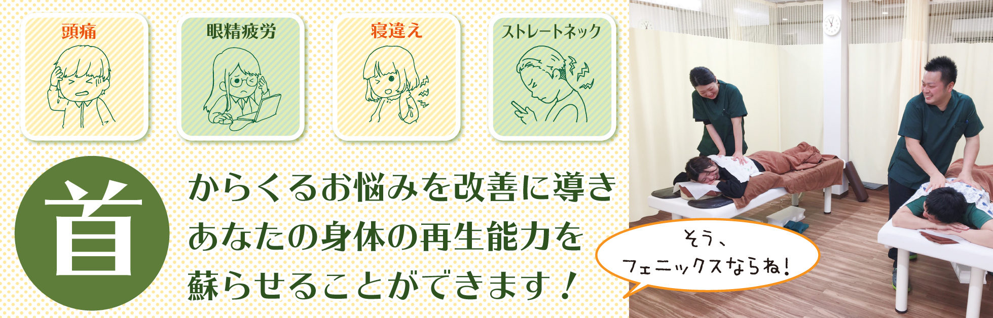 フェニックス鍼灸マッサージ治療院は、首症状に特化した治療院です
